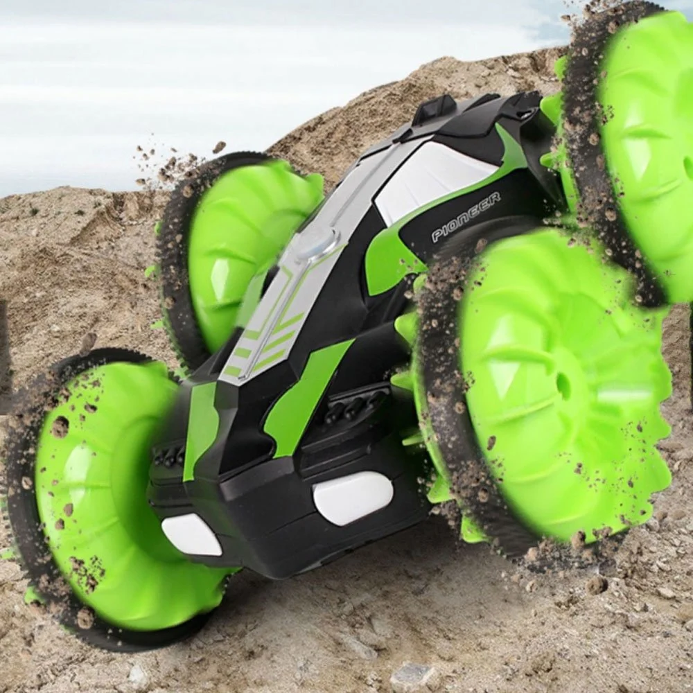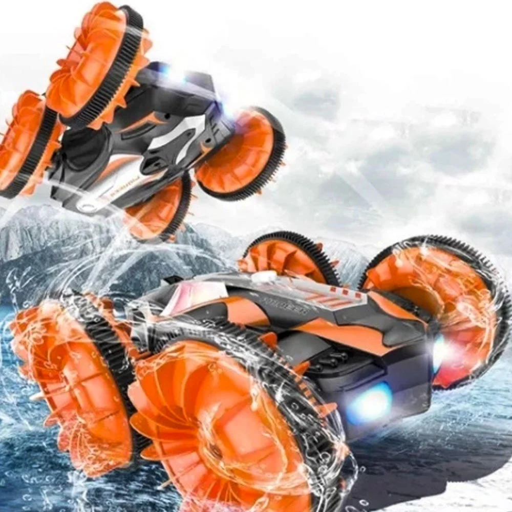 Tem alta velocidade e tração nas 4 rodas, anda no chão e na água.